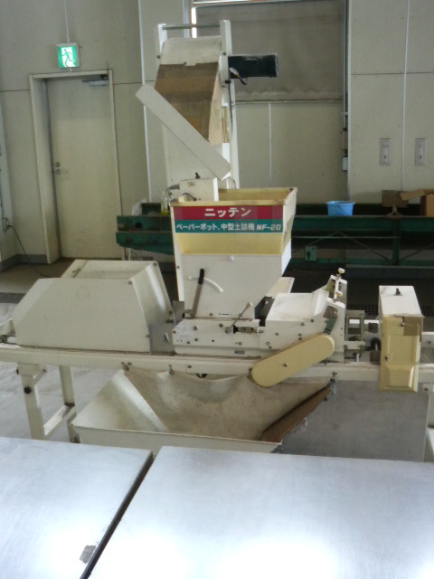 昨日、川西農協の施設にて長ネギの苗作りの為のポット作りをしました。